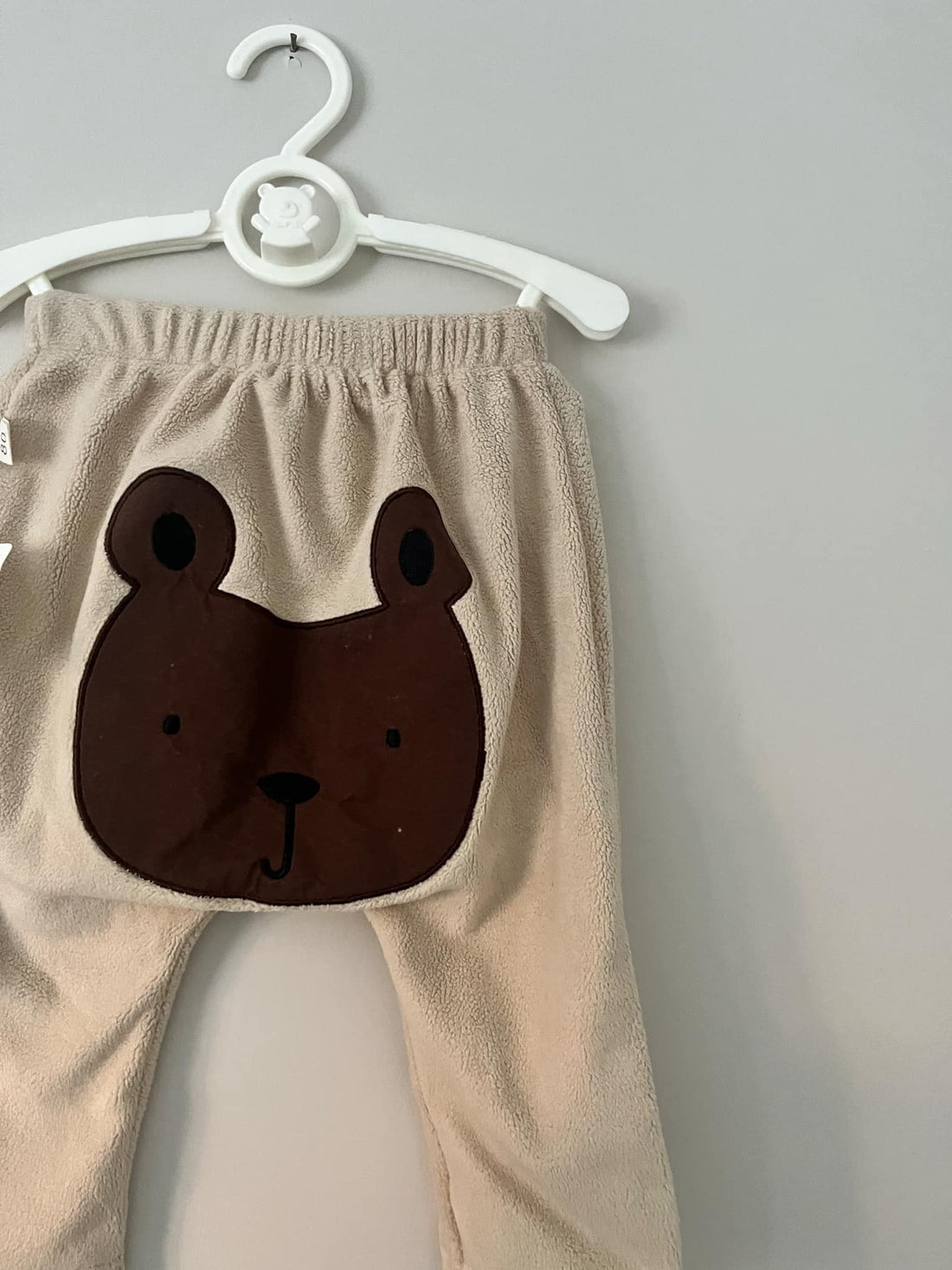 Beige Fleece Bear Detail Pants
