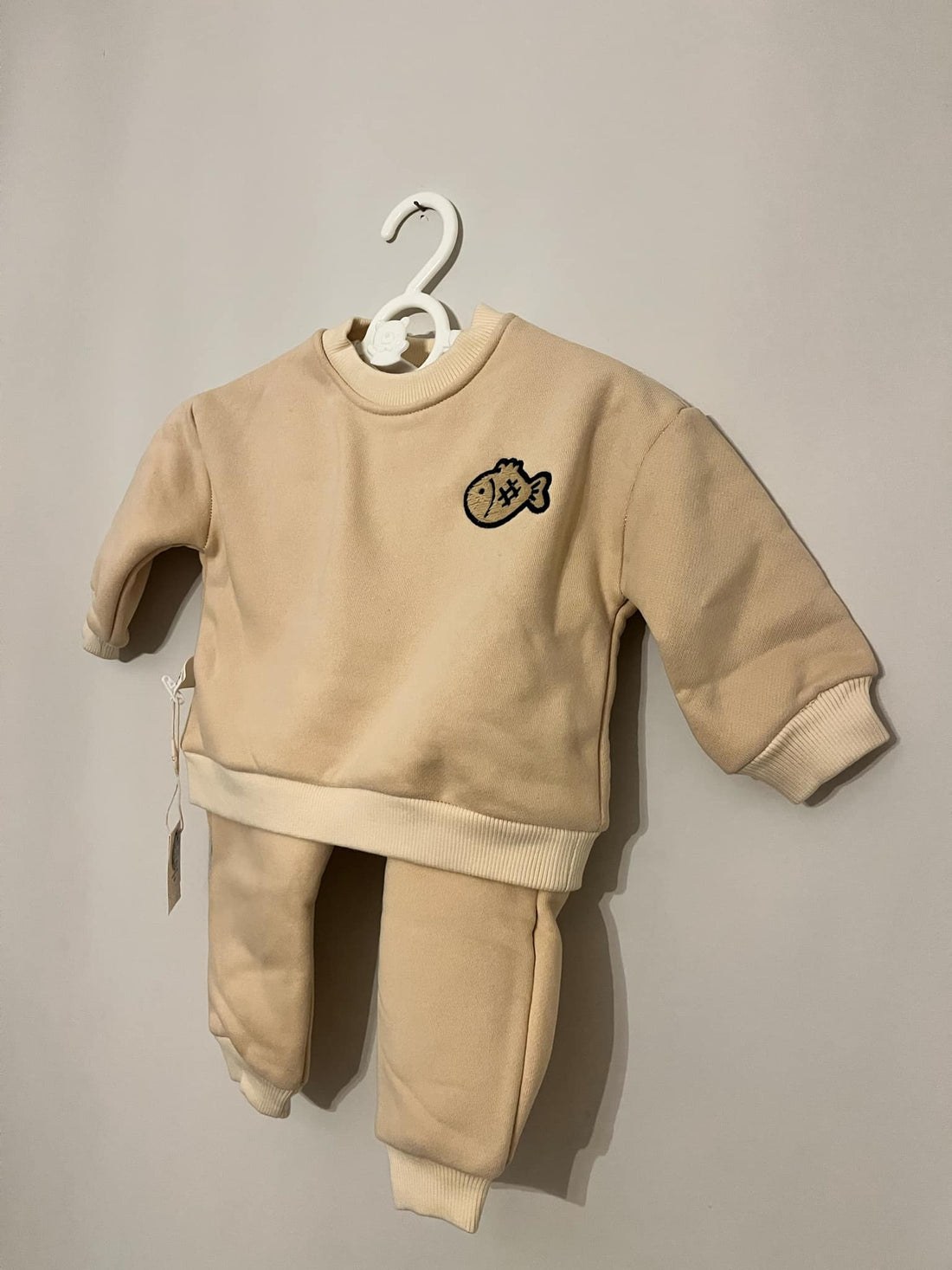 Beige Fish Embroidered Sweatshirt & Jogger Coord