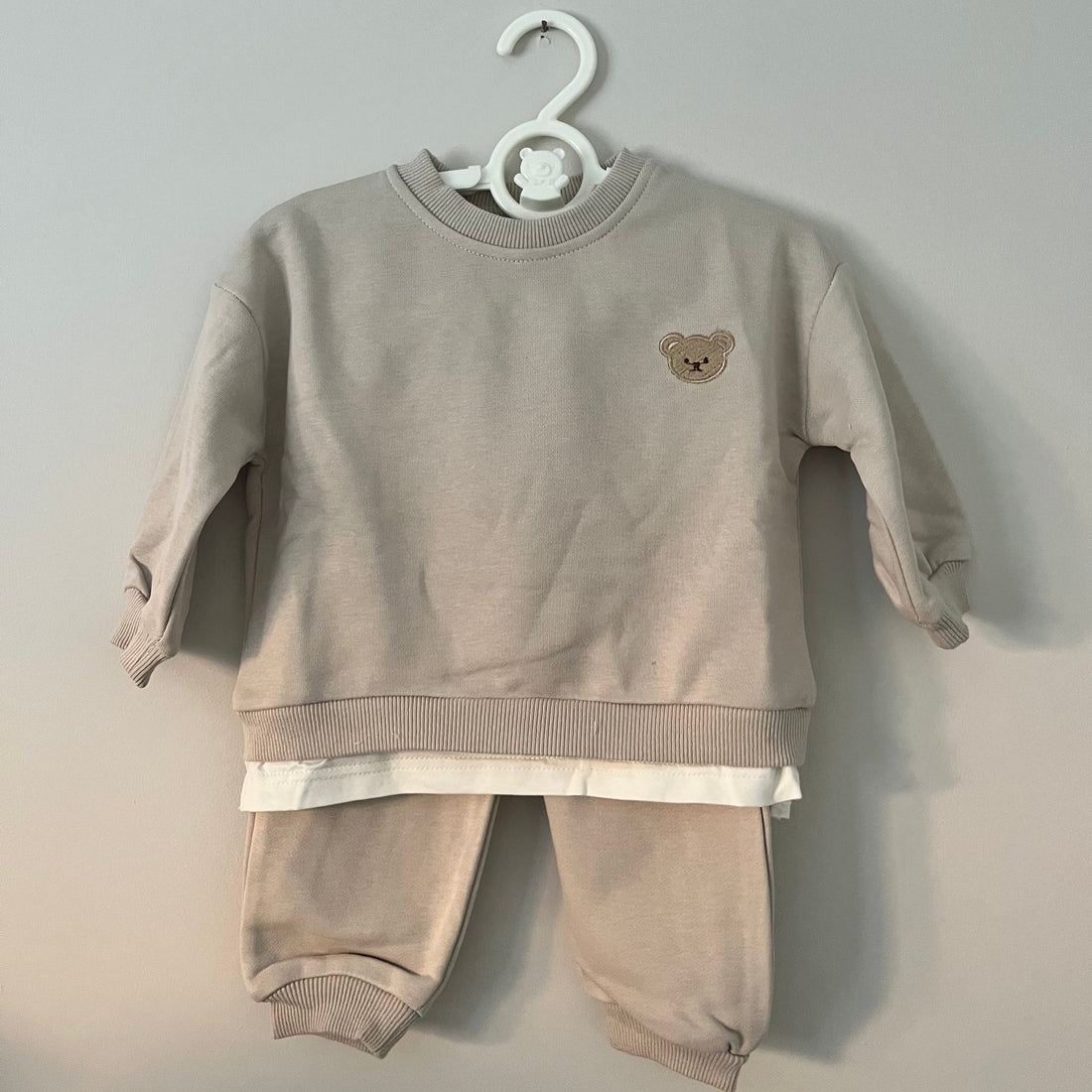 Beige Teddy Bear Embroidered Sweatshirt & Jogger Co-ord