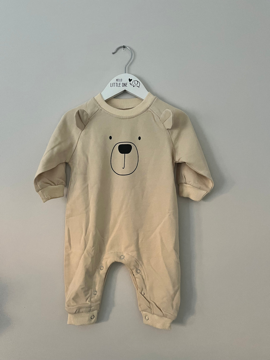 Wrap your little one in cosy comfort with this adorable beige sweatshirt romper, featuring a...
