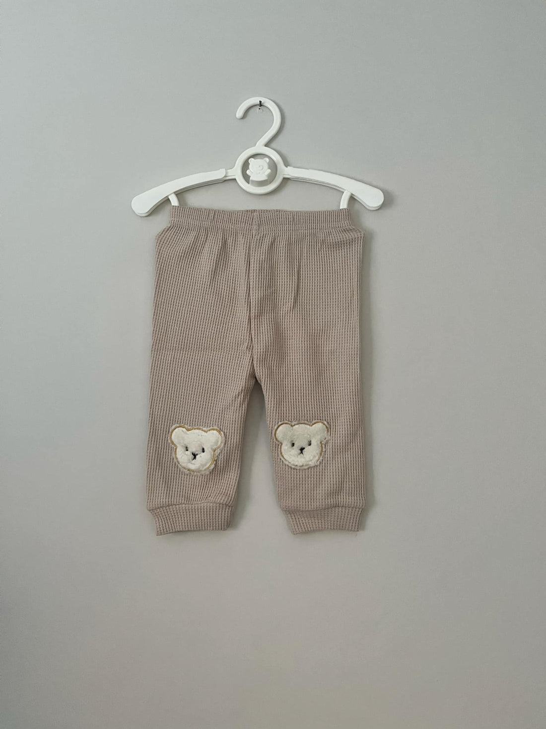 Beige Waffled Bear Detail Pants