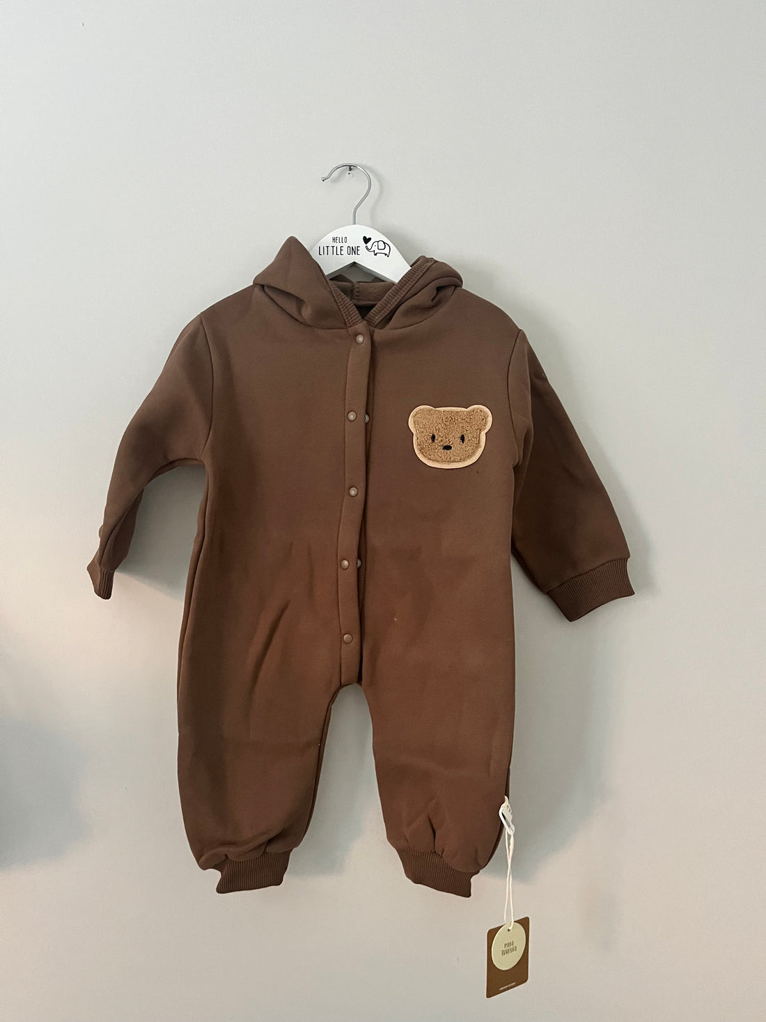 Brown Button-Up Teddy Bear Hooded Jumpsuit
