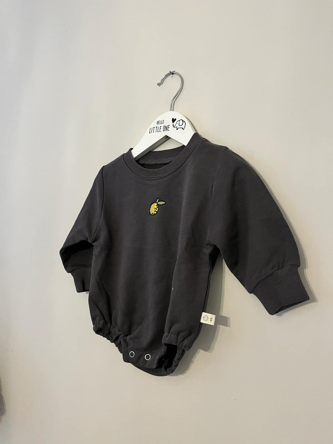 Adorable navy romper featuring cheerful lemon embroidery that'll have your little one looking absolutely citrus-cute!...