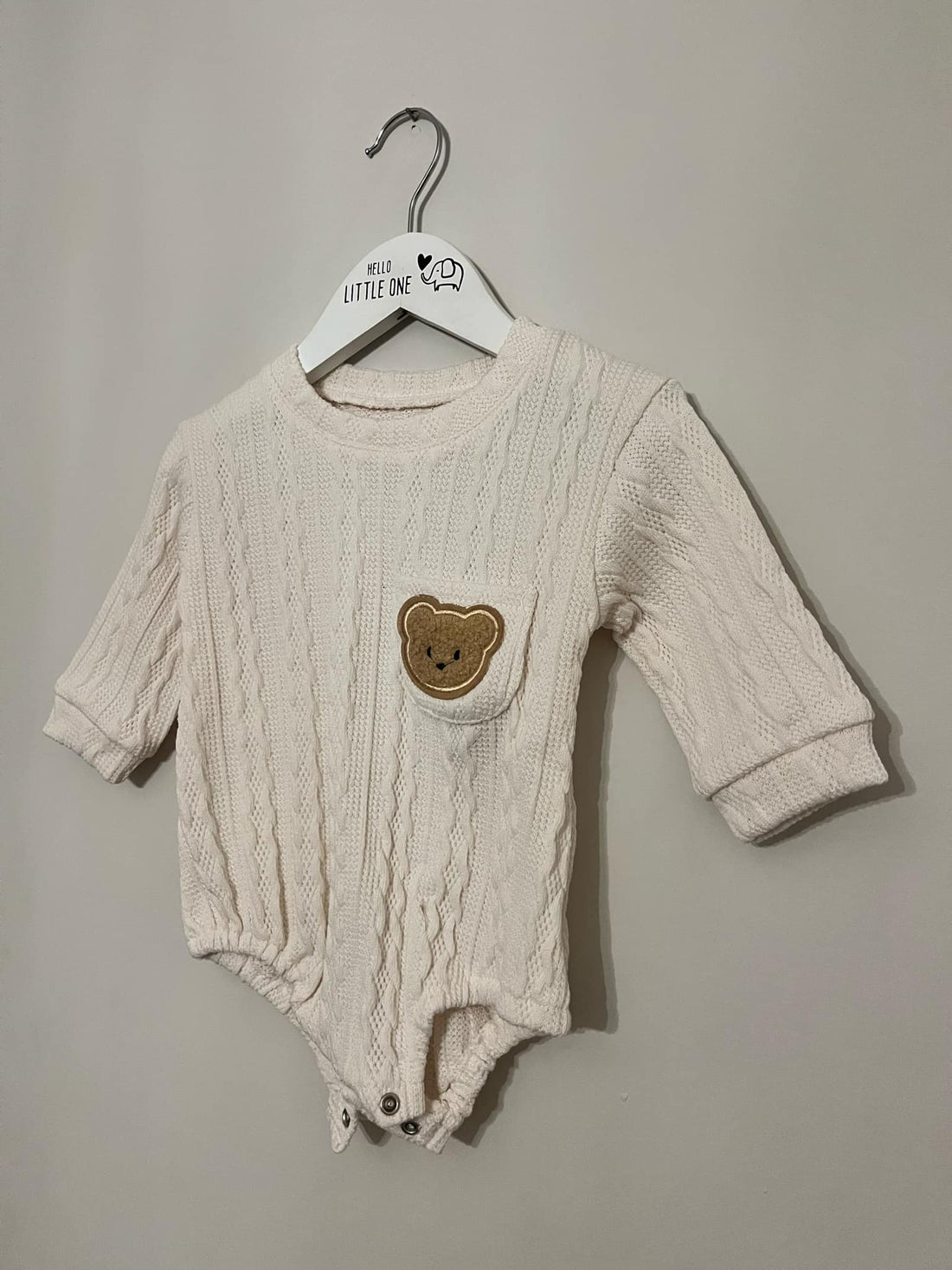 Cream Knit Teddy Bear Embroidered Long Sleeve Romper