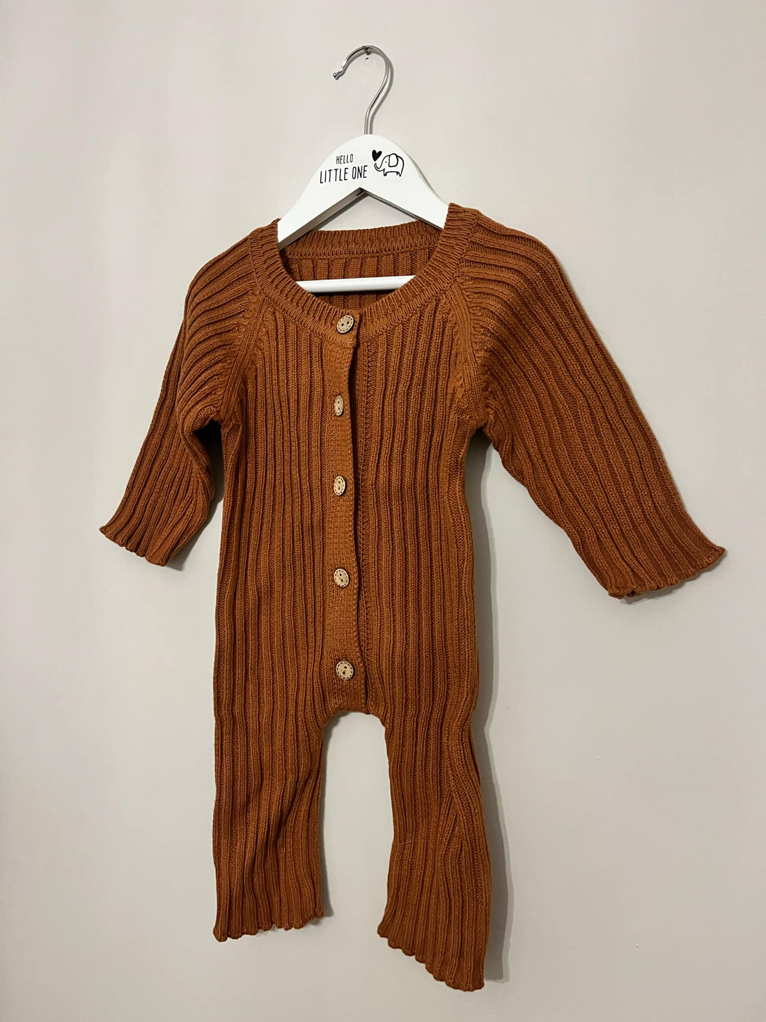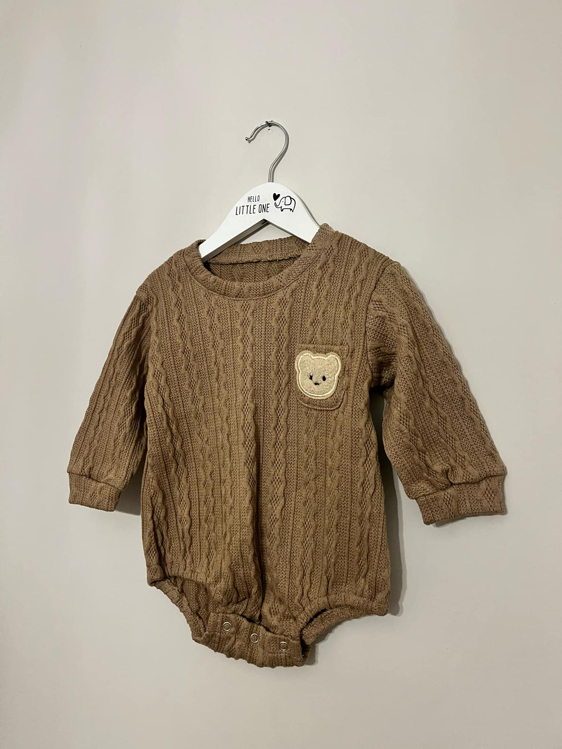 Wrap your little one in cosy comfort with this adorable brown knitted bodysuit. Featuring a...