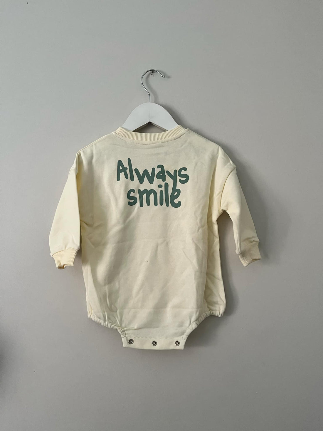 Cream "Always Smile" Print Long Sleeve Romper