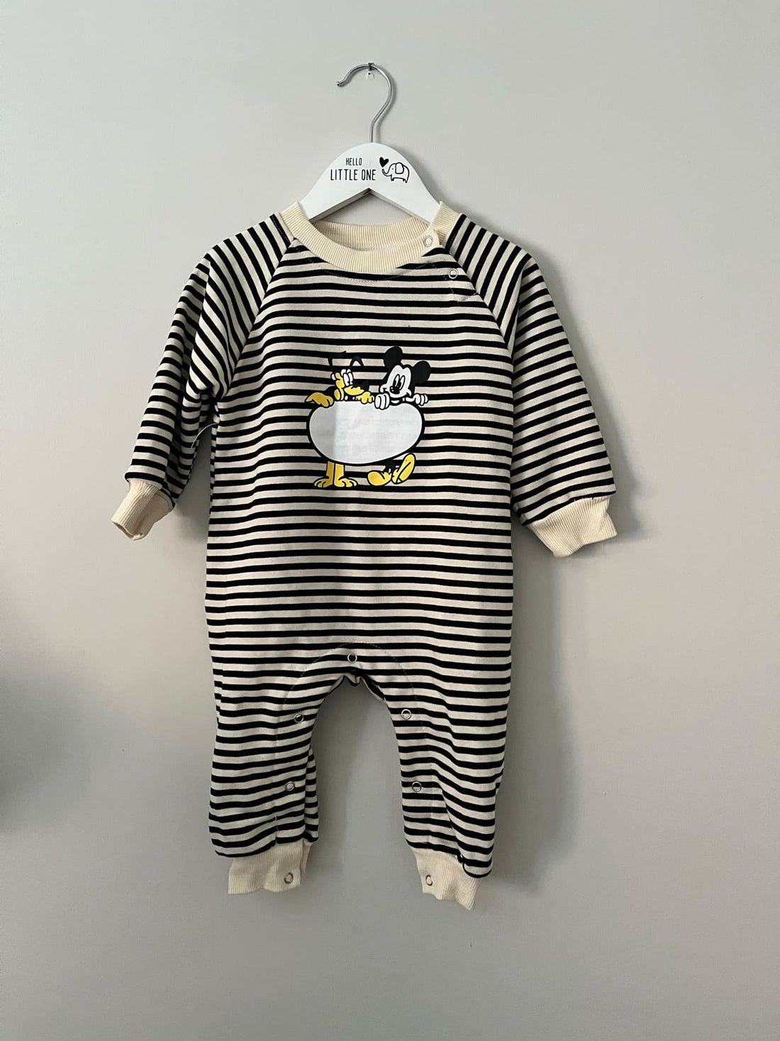 Hop into adorable style with this charming Black & Cream Striped Mickey & Pluto Jumpsuit!...