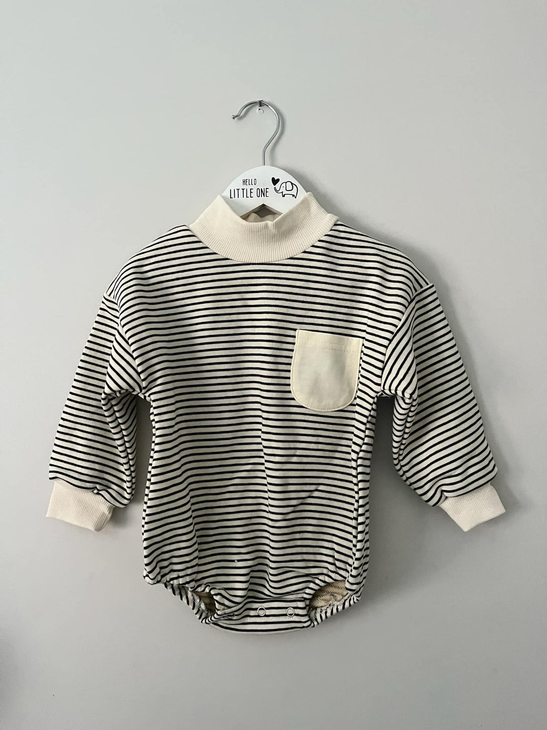 Black & Cream Striped Long Sleeve Romper