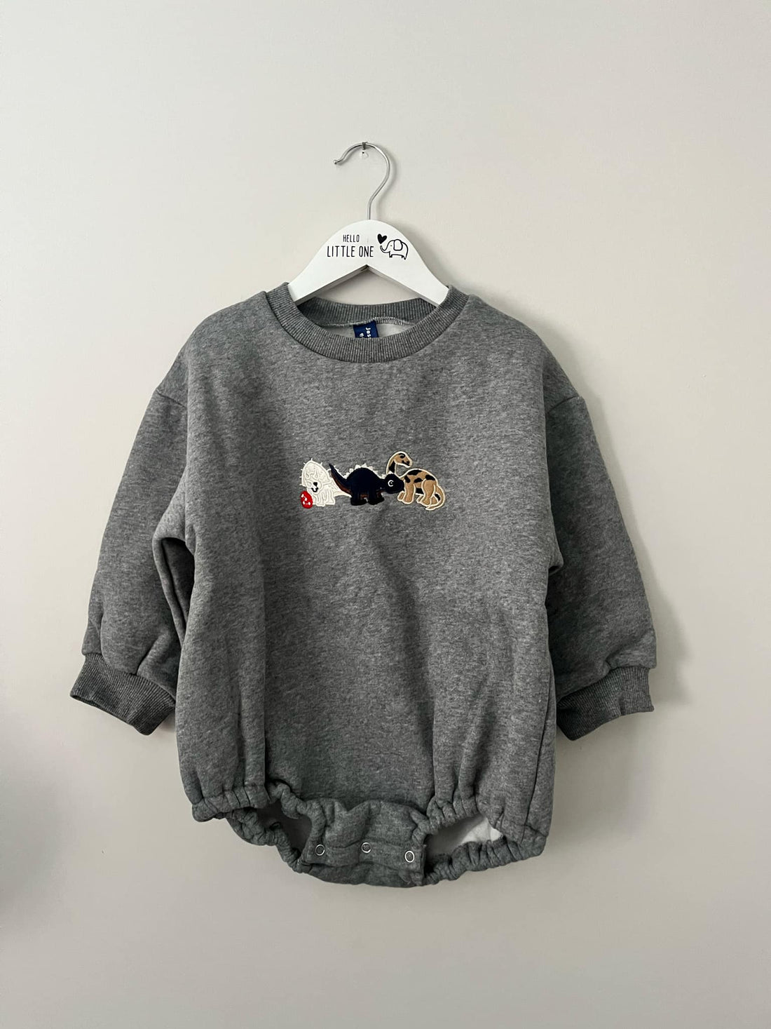 Dark Grey Dinosaur Embroidered Long Sleeve Sweatshirt Romper