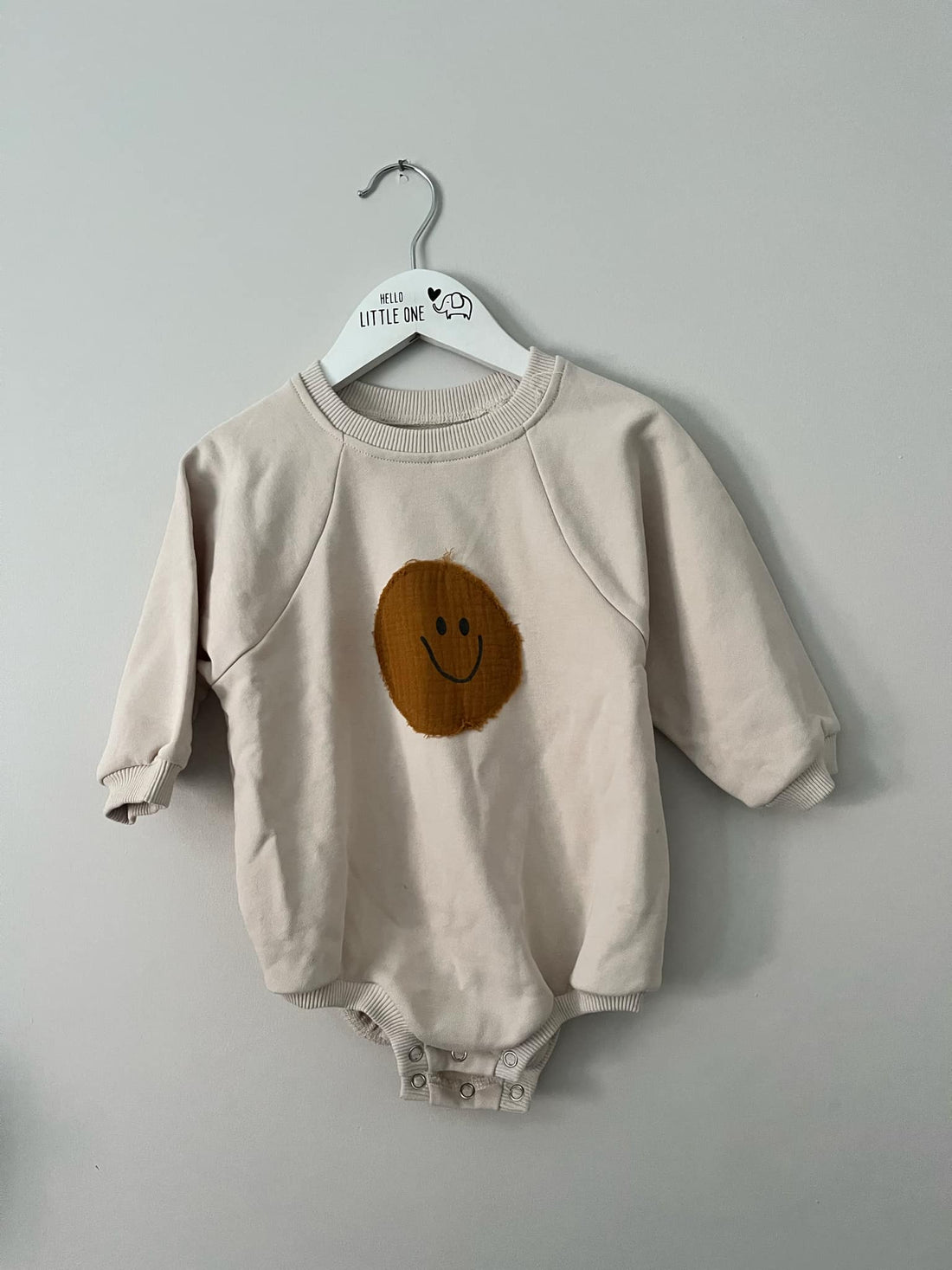 Beige Smiley Face Detail Sweatshirt Romper