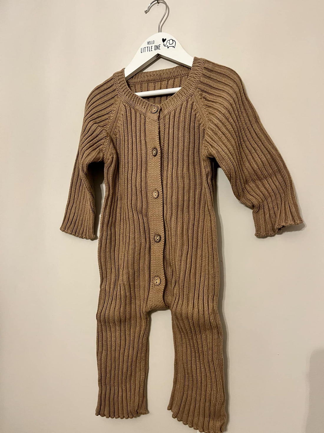 Light Brown Knitted Button Up Long Sleeve Bodysuit