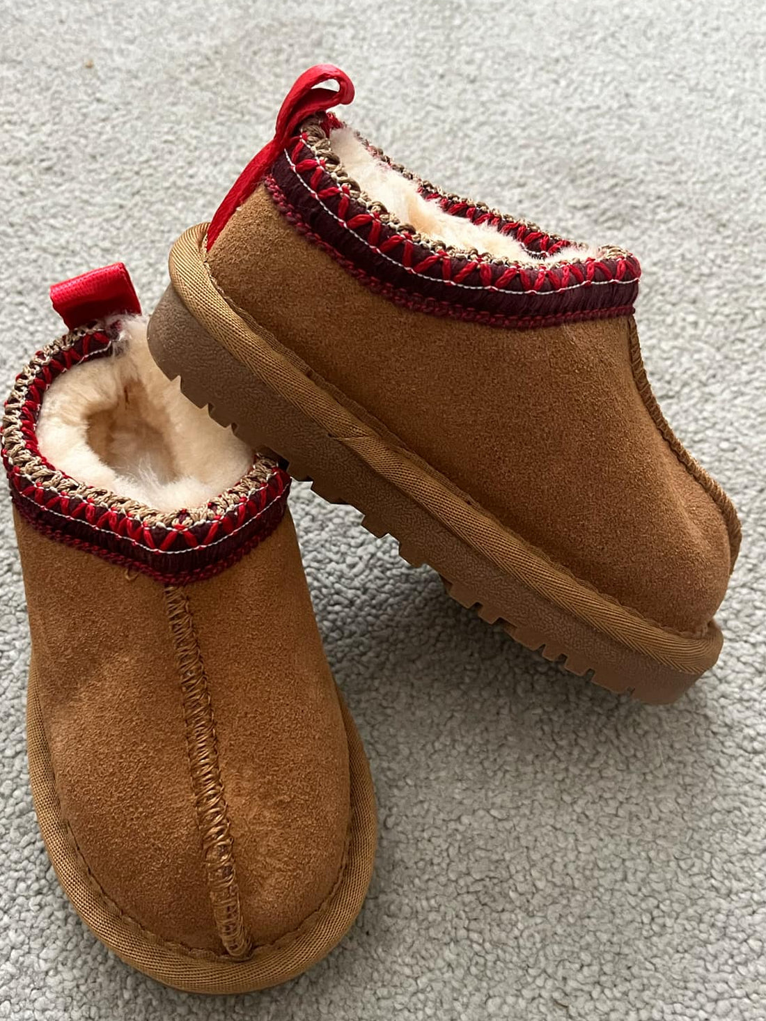Step into cozy comfort with these adorable Chestnut and Red Stitching Tazzy shoes, designed with...