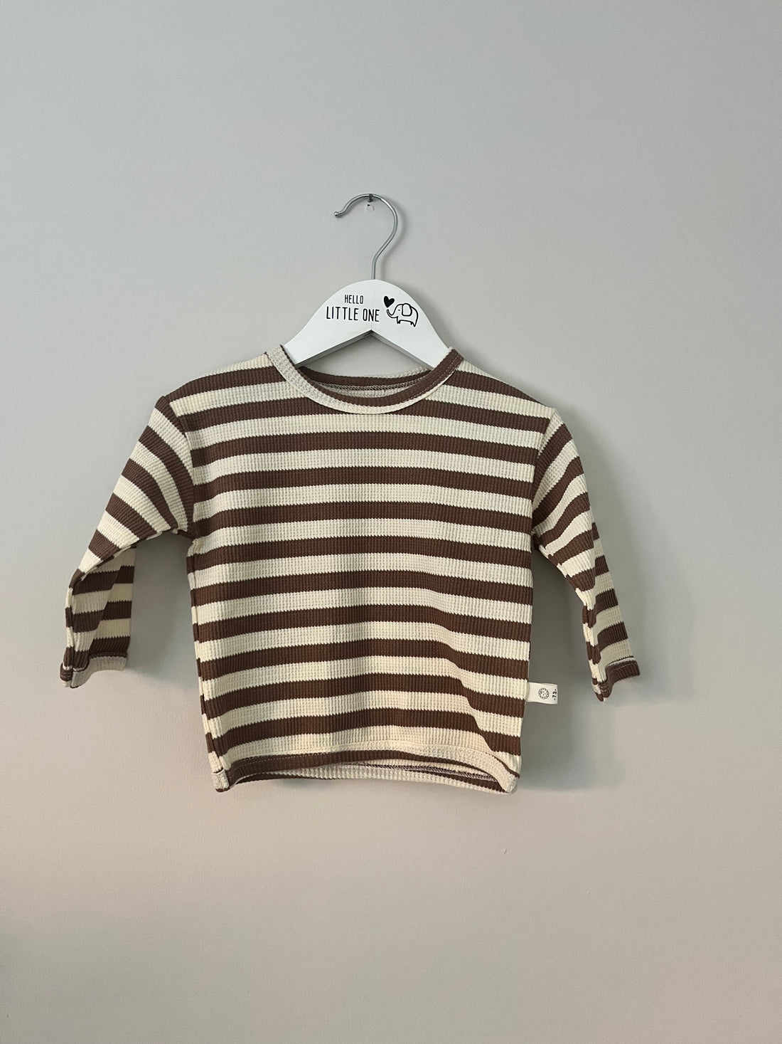 This playful long sleeve top features a brown and cream striped pattern that will make...