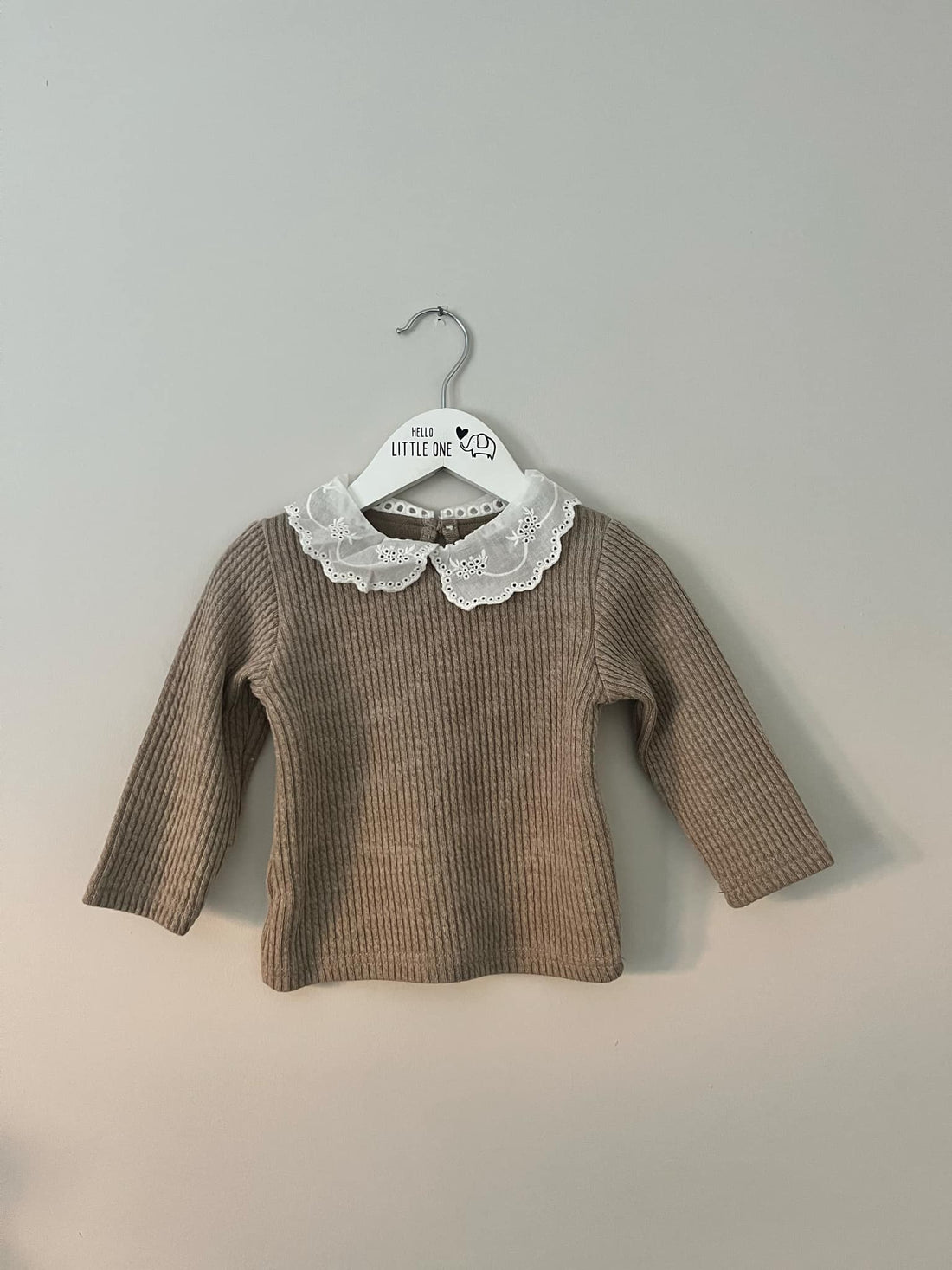 This ribbed cotton collar top is perfect for your little one. Its brown color adds...