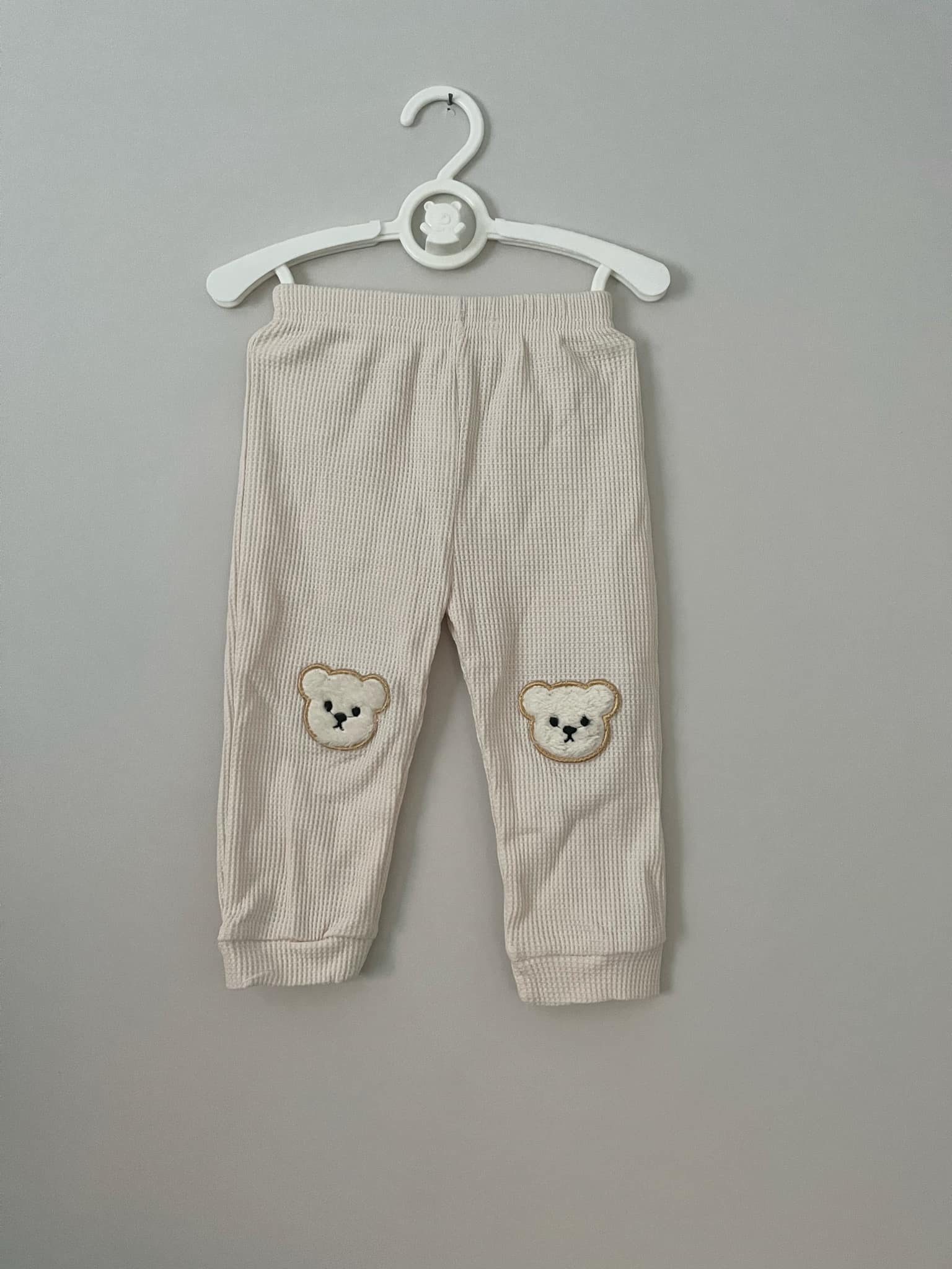 Adorable beige waffled pants designed for little ones who love comfort and style! These cosy bottoms feature a charming bear detail that'll have your toddler grinning from ear to ear. The soft, textured waffle fabric is gentle on delicate skin whilst the relaxed fit allows plenty of room for playtime adventures. Perfect for everyday wear, whether they're crawling, toddling, or exploring the world around them. A wardrobe essential that's as fun as it is functional!