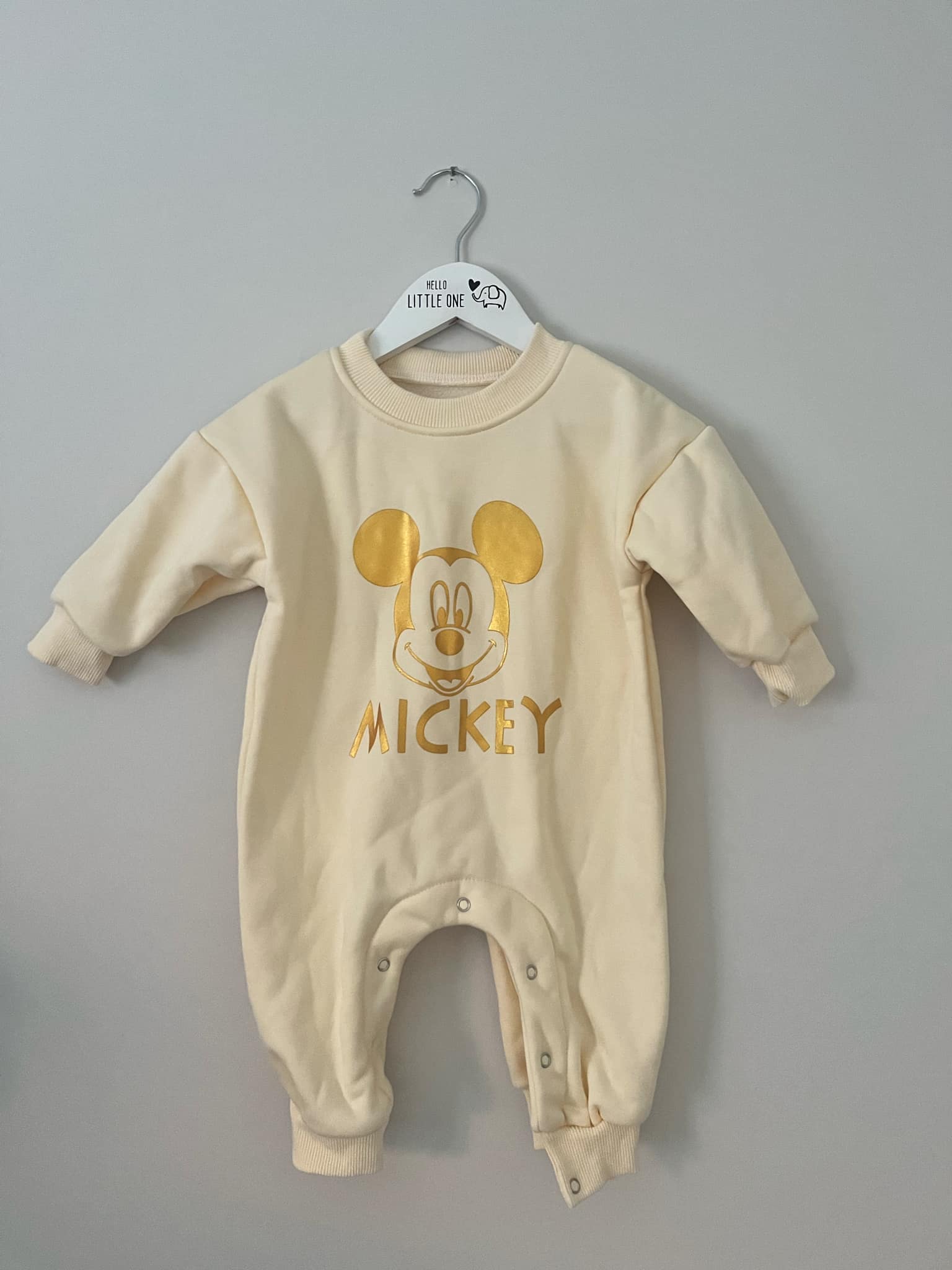 Hop into style with this adorable cream jumpsuit featuring Mickey's iconic gold-detail print! Perfect for little ones who love classic Disney magic, this one-piece wonder combines comfort with character charm. The soft, breathable fabric keeps toddlers cosy all day long, while the playful design sparks joy at every giggle. Whether it's playdates, family outings, or casual days at home, this jumpsuit is the go-to choice for parents who want their tiny fashionista looking absolutely enchanting. Simple, sweet, and oh-so-fun!