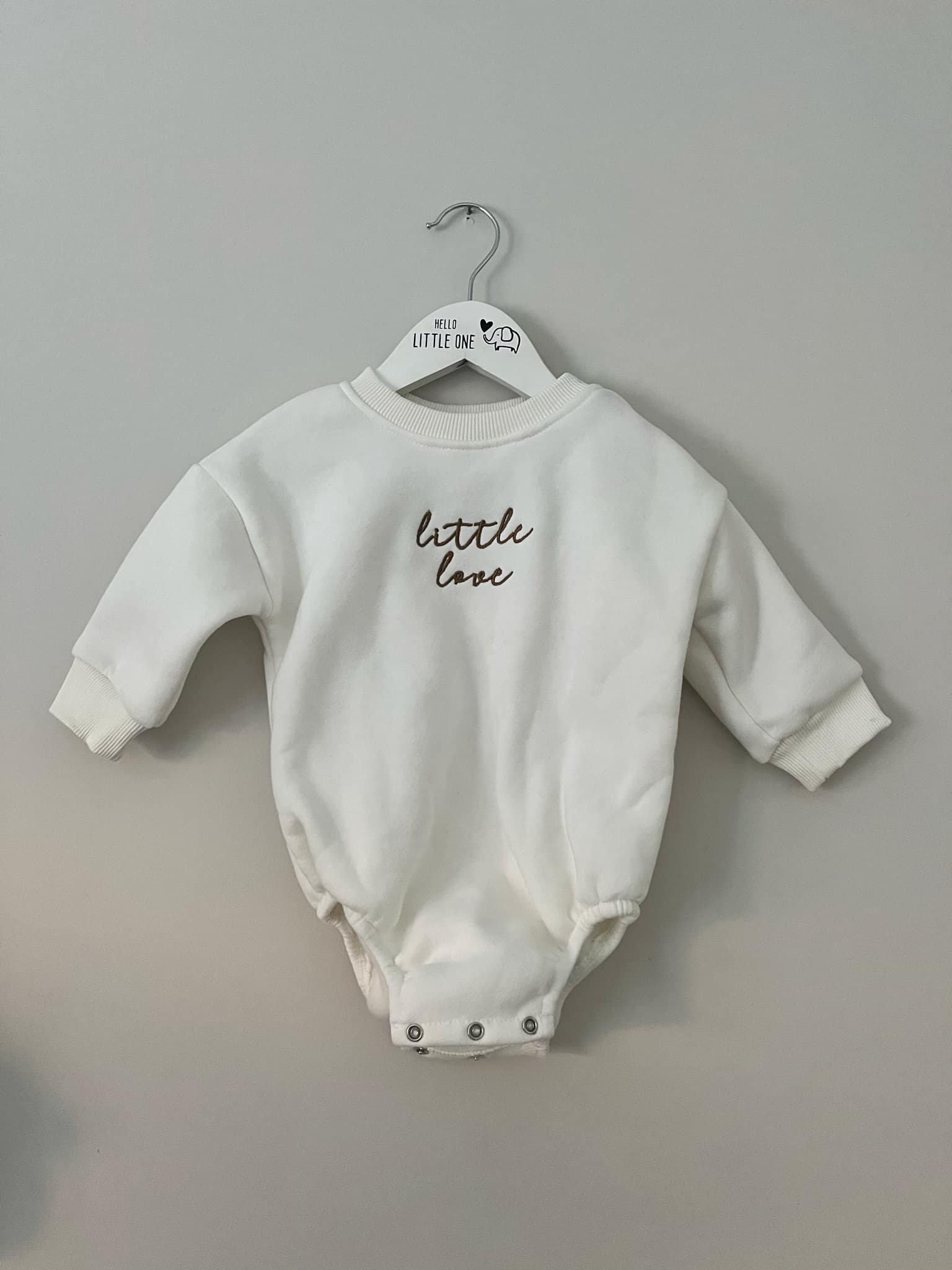 Get your baby cozy in this Little Love Long-Sleeve Romper. Perfect for snuggles, playtime, and cute photo ops, this romper will keep your little one comfy and stylish. Made for little loves, this romper is a must-have for any new parent. (Cuteness overload not included!)